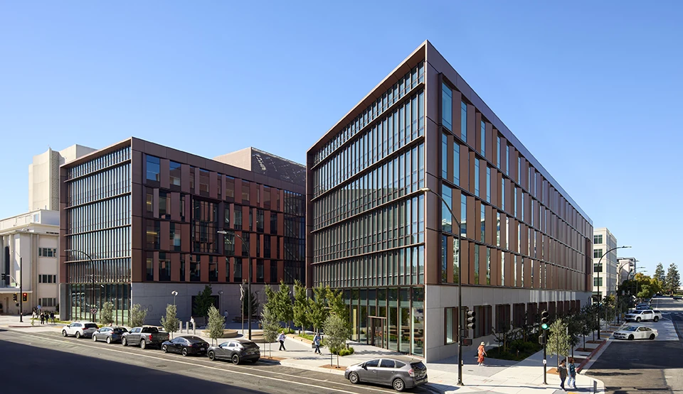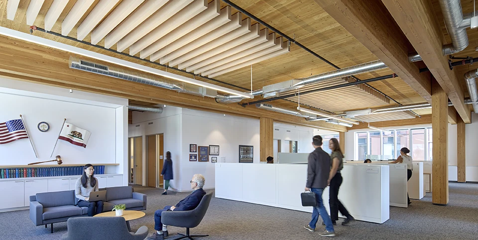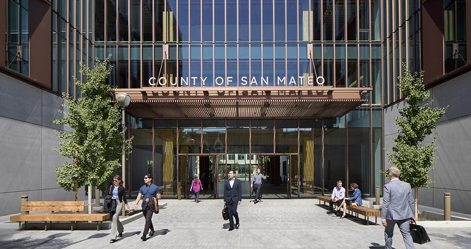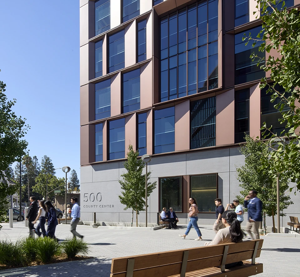 Setting a new benchmark for sustainable public architecture, 500 County Center is the first Net Zero Energy civic building constructed with mass timber in the U.S. The new 5-story ulta-low carbon headquarters houses several San Mateo County departments and the Board of Supervisors’ Chambers Auditorium—a central community meeting place.
