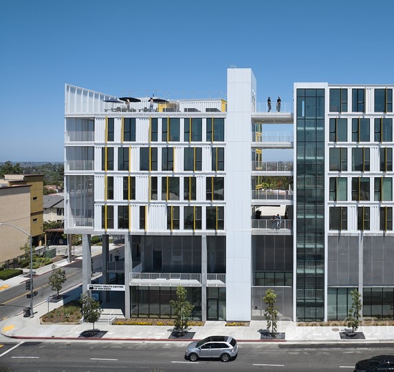 The design for this single-family development which includes 172 residential units over a parking structure which has two levels of below grade parking along with two levels of above grade parking and ground floor behavioral health clinic. The development provides a mix of affordable housing units for medical interns working in the health clinic and permanent supportive housing units with on site services. The design embraces the use of single use recycled shipping containers as a rigorous module in its five levels of housing on the upper floors which will be fully prefabricated modular units constructed off site.