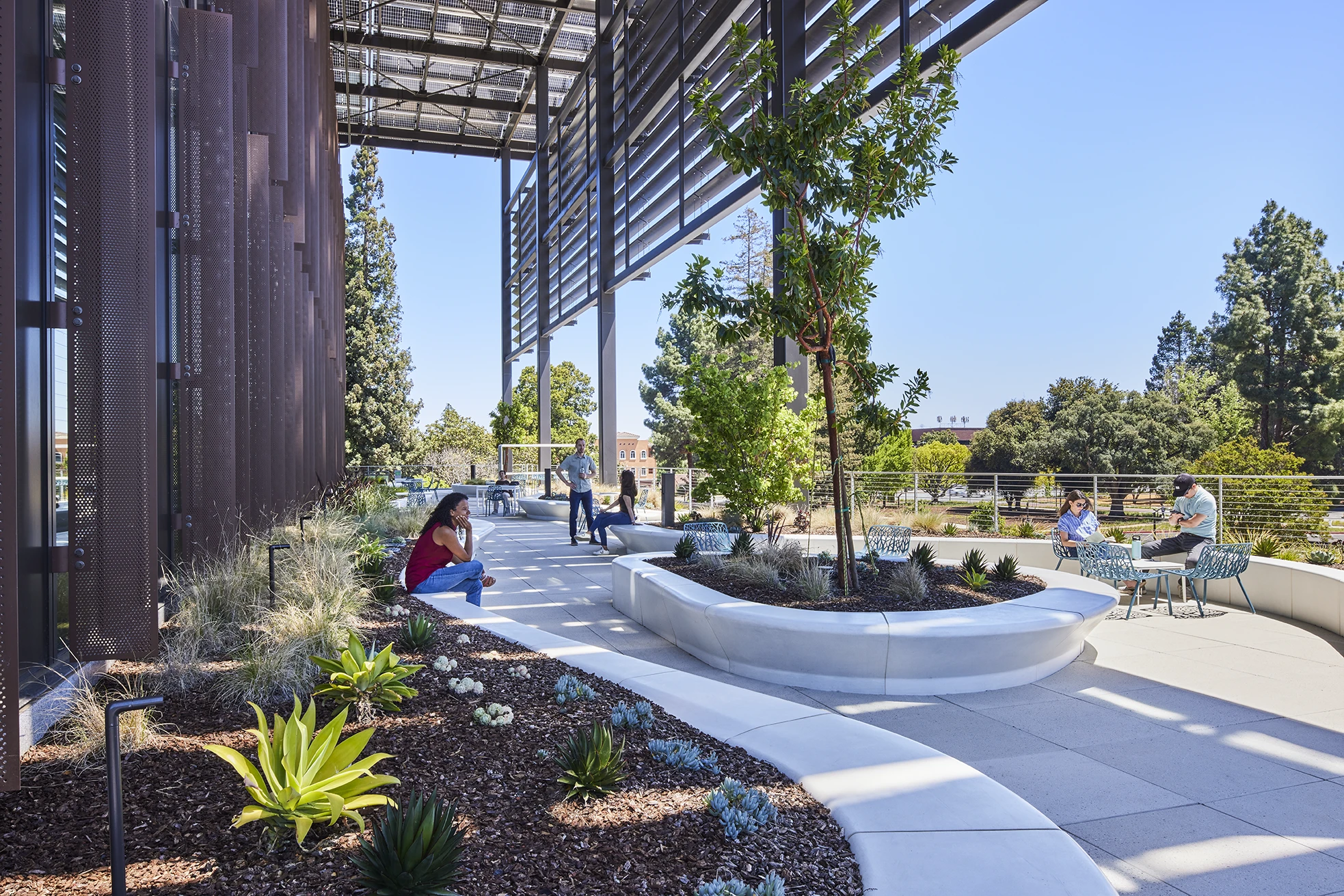 The Sunnyvale City Hall is rooted in the community, formed as fusion of sustainability and human-centric design, with every decision supported by performance outcomes. The building’s most obvious expression of a commitment to sustainable principles is the overarching solar canopy, reflecting its Net Zero Energy performance and acting as a visible model for the community it serves.