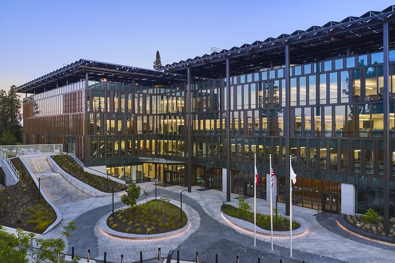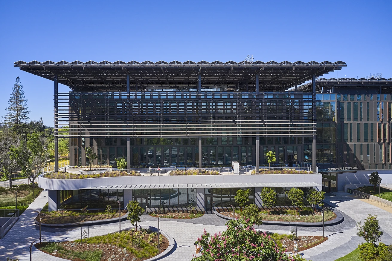 Sunnyvale City Hall is the gold standard for civic buildings. It goes beyond human-centered design to life-centered design. It embodies design excellence for its ambitious public-facing program, remarkable achievements in sustainability (Certified net-zero energy use and LEED Platinum), and its beautiful aesthetic qualities.